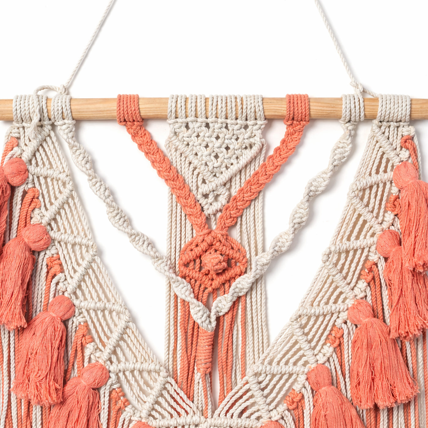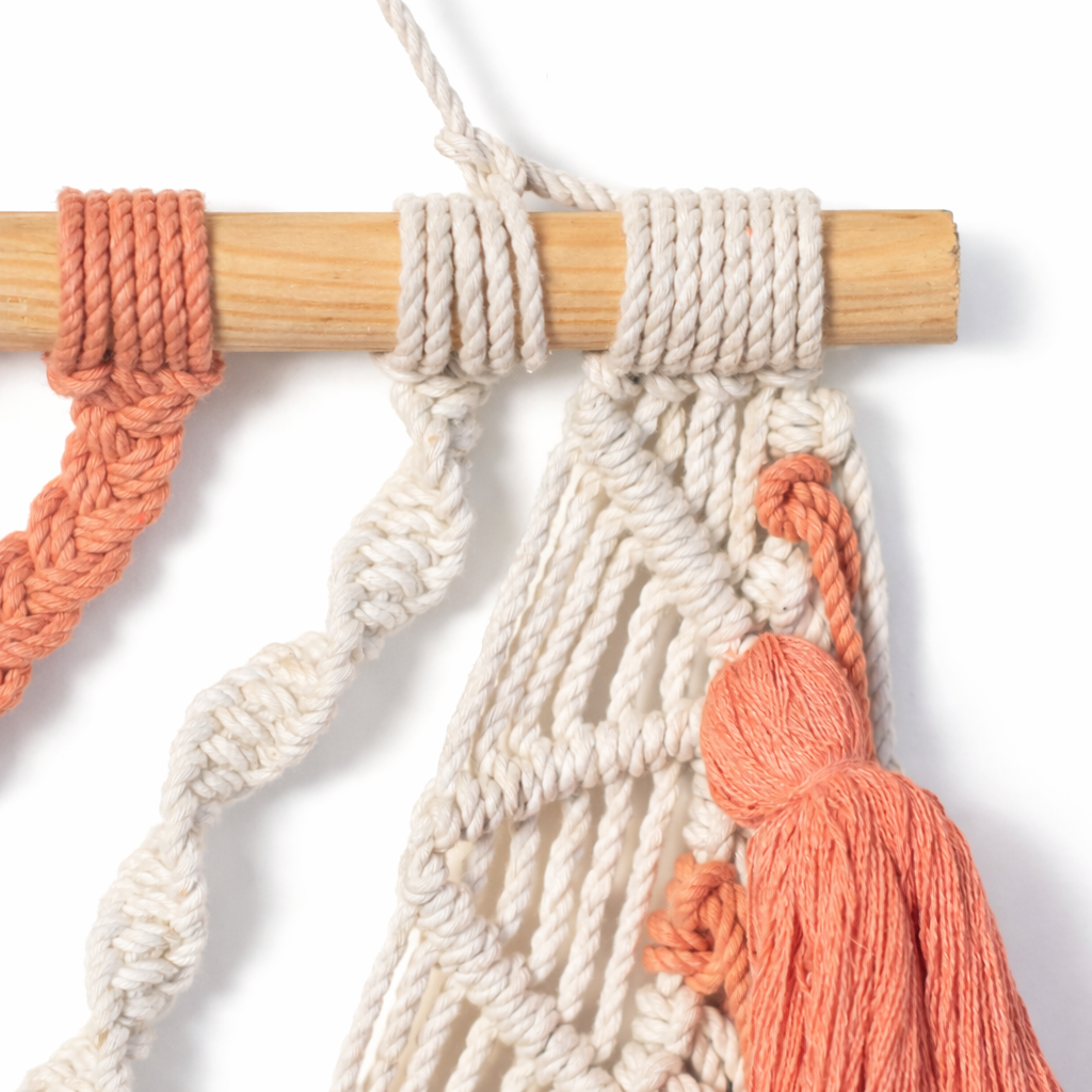 -Macramé wall hangings may arrive slightly crumpled from shipping. Simply smooth out the fringes with your fingers or a comb and use a little steam or a hair dryer on a low setting to restore their shape.