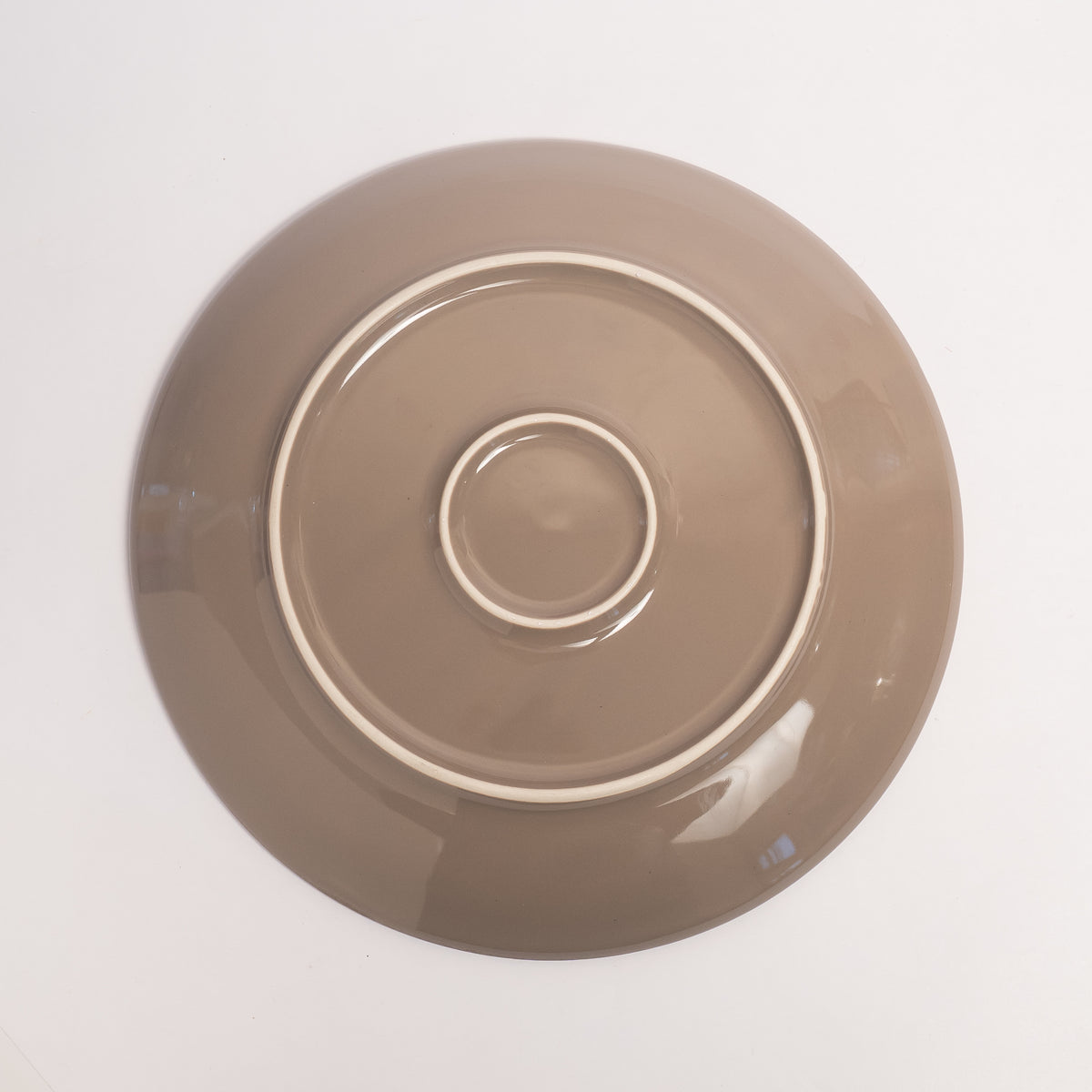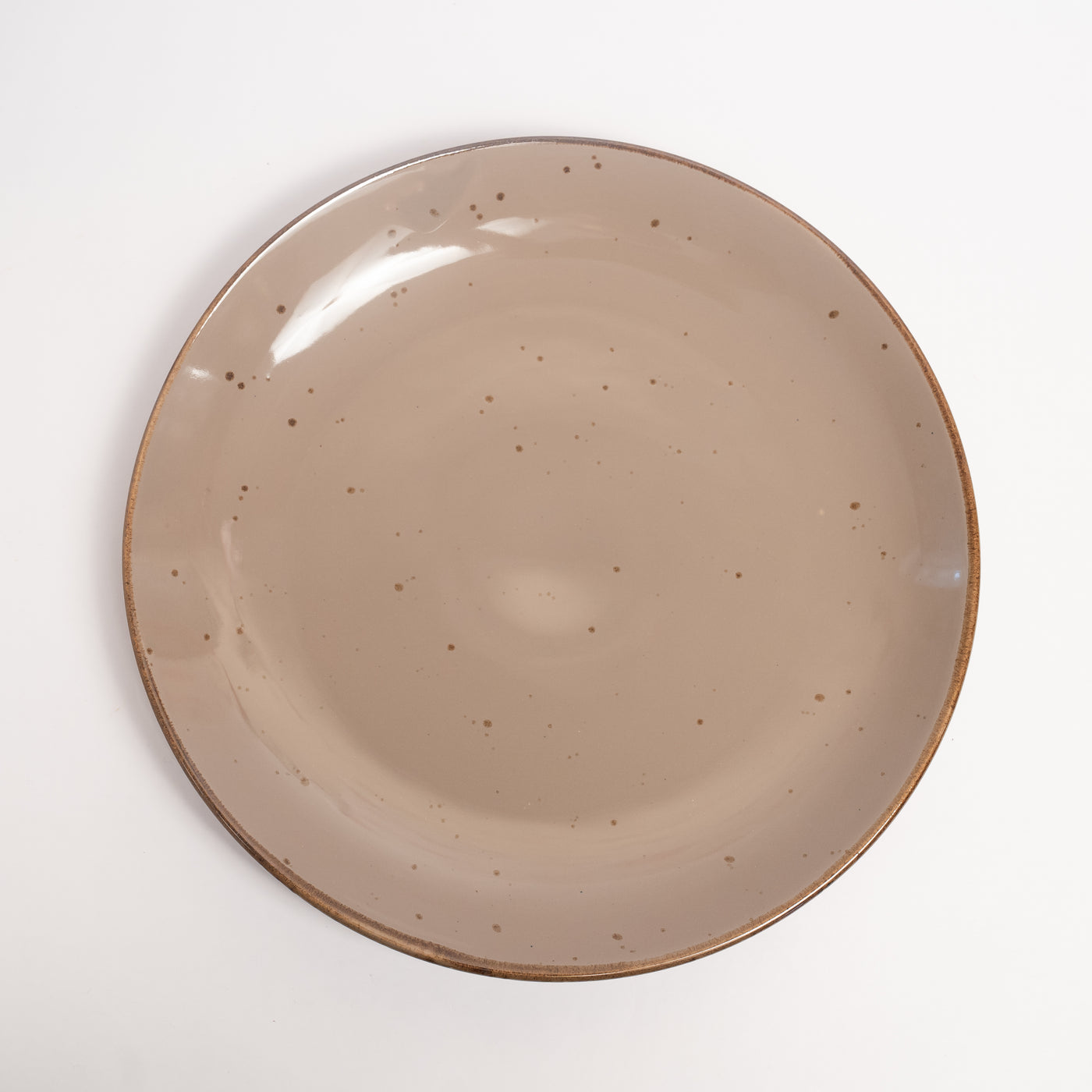 Discover our handcrafted ceramic dinner plate featuring a smooth grey interior glaze with subtle black speckles. The natural, earthy brown rim adds a rustic, artisanal touch, making the plate perfect for everyday dining or stylish serving. Its contemporary grey finish blends elegance with durability, enhancing any table setting with a modern, handcrafted vibe. Ideal for meals, snacks, or desserts, this versatile plate brings refined simplicity to your kitchen.