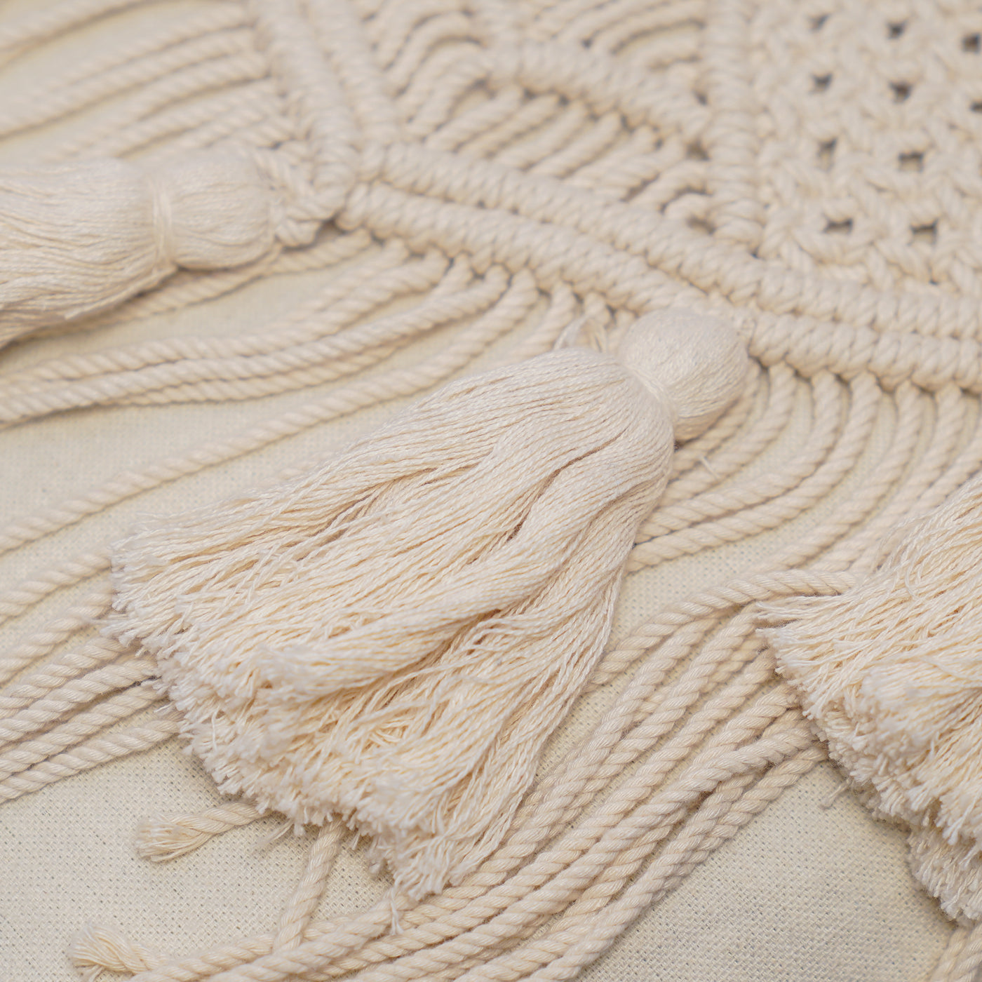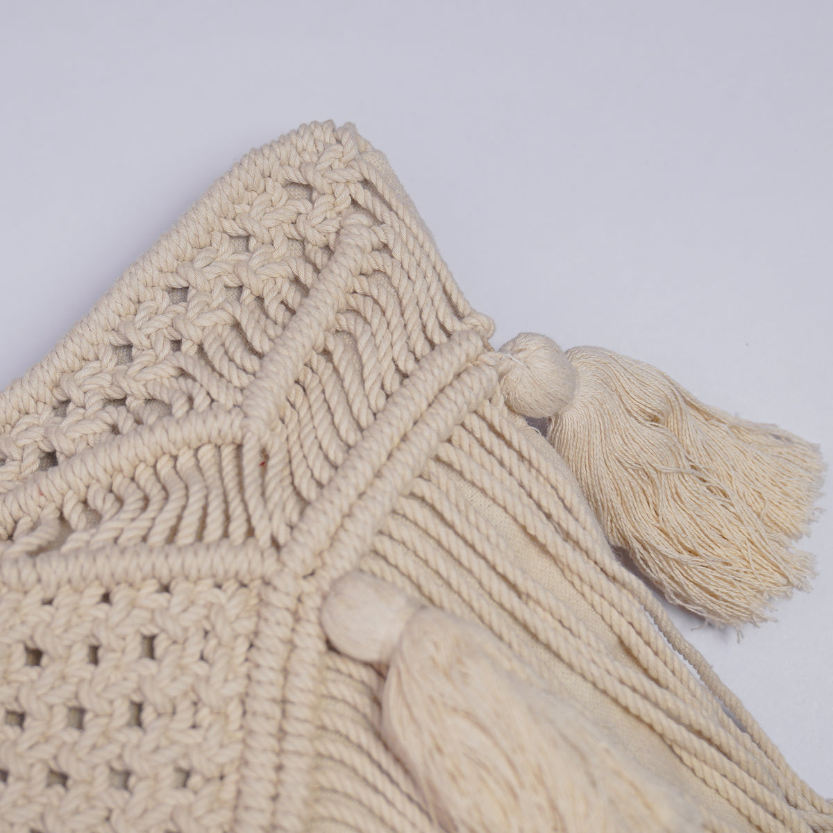 Macrame cushion covers add a unique bohemian touch to the home decor with their intricate knotting techniques with fringes and handmade craftsmanship.
